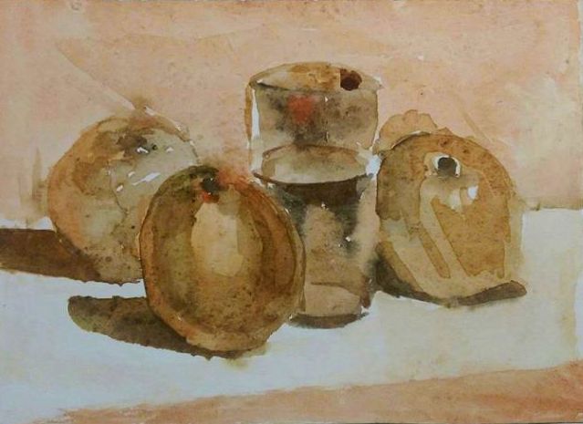 Ein bisschen kann man dem entgegen arbeiten, indem man das Bild nach dem Trocknen unter einen Stapel schwerer Bücher legt, aber dennoch können sich die Farben des Aquarells nicht in ihrem vollen Reichtum und ihrer vollen Fülle entfalten.