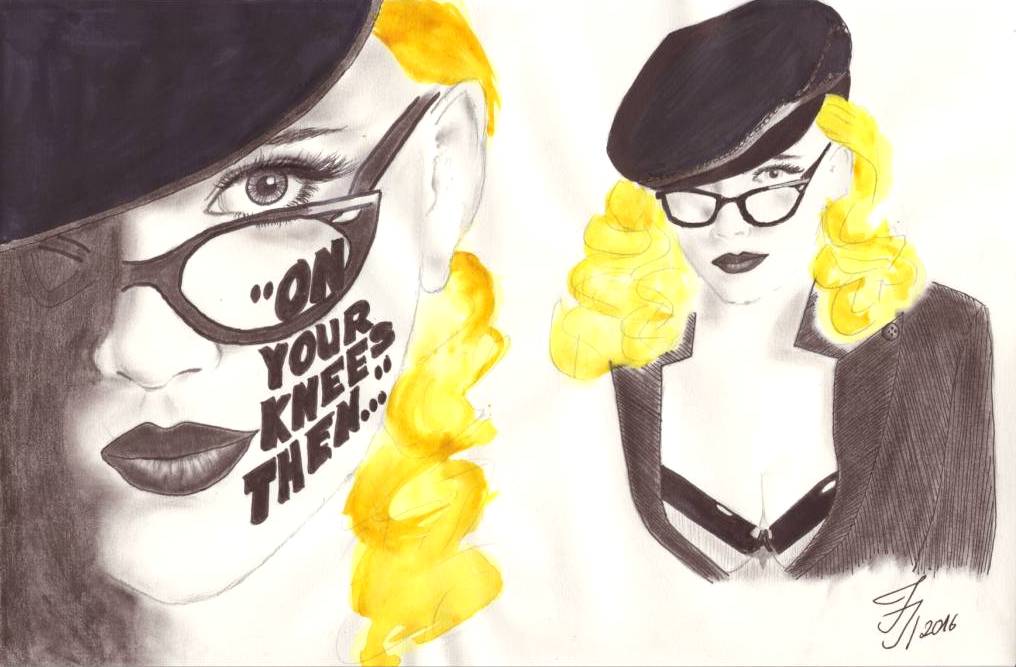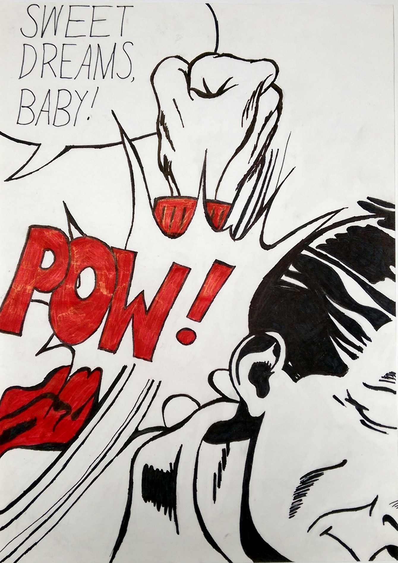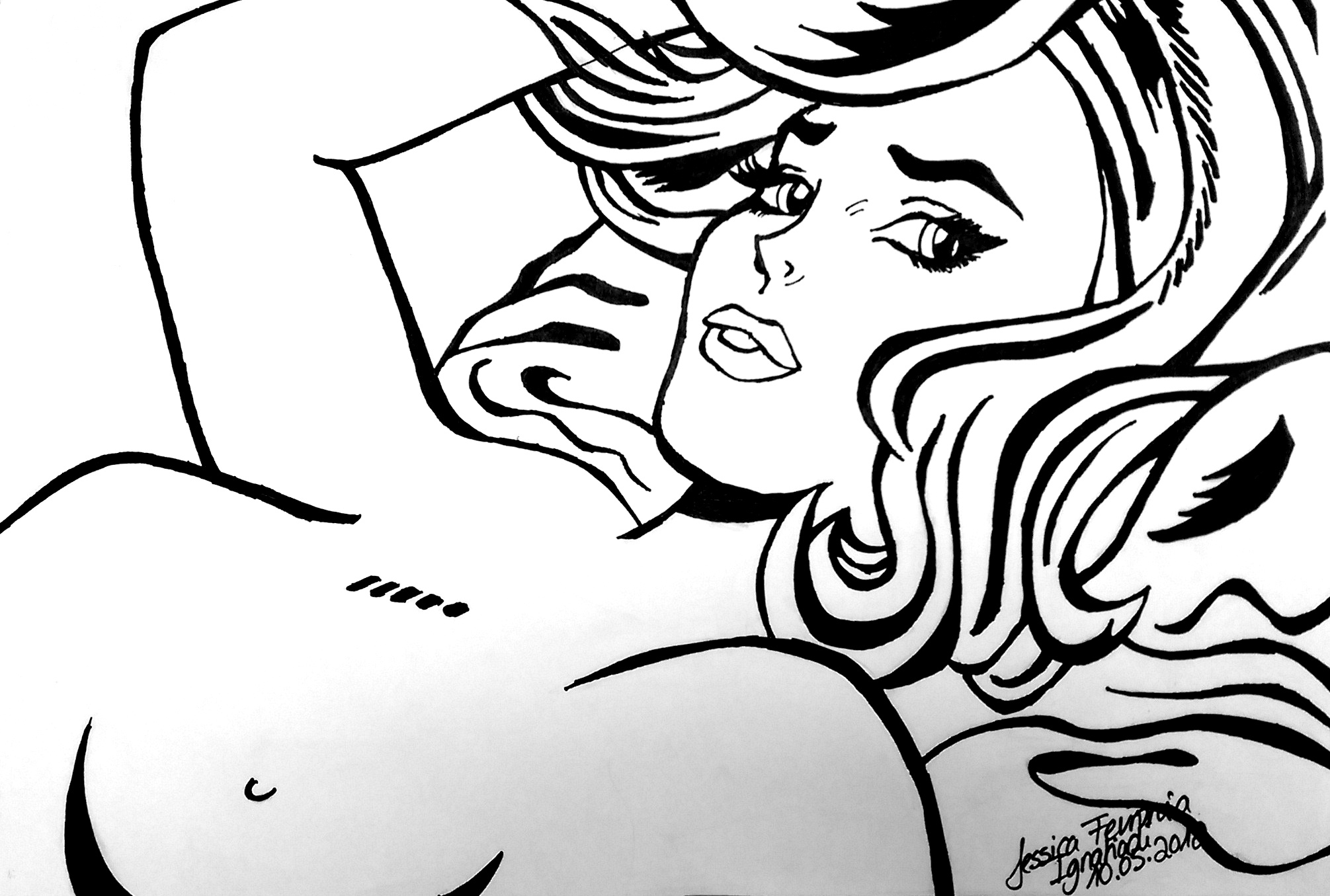 Eines wunderbaren Tages entdeckte ich die Pop Art Welt der 60er die von Roy Lichtenstein und Andy Warhol geprägt wurde. Ich verliebte mich augenblicklich in die Werke von Roy Lichtenstein und zog seit dem das Malen mit Finlinern und Flizstiften vor, nachdem ich ein Paar seiner Werke nachzeichnete, um den Cartoon und Pop Art Stil besser zu analysieren.